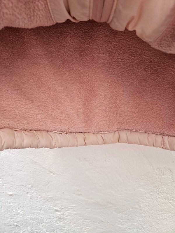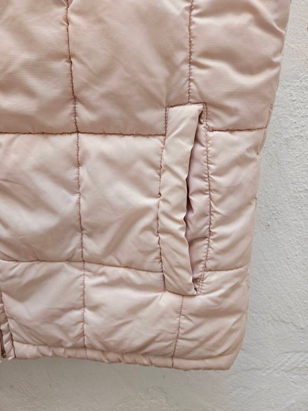 Chaleco acolchado rosa con borrego por dentro como nuevo. Lleva dos bolsillos delanteros. Es la talla M. De axila a axila mide 48cm y de largo 58cm.