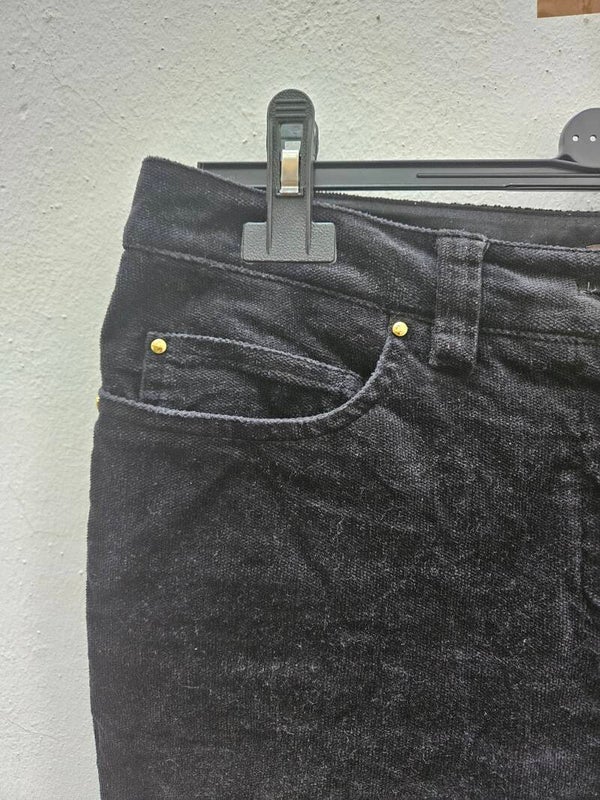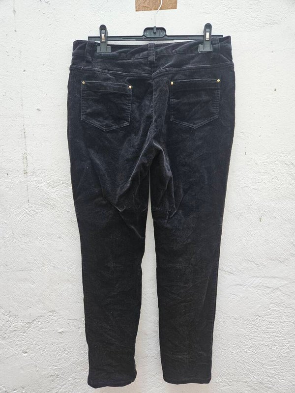 Pantalón de pana fina negro como nuevo. Es la talla 40, de la marca Cortefiel. De cintura mide 42cm, de tiro 24cm y de largo 100cm. Composición: 97% algodón y 3% elastano.