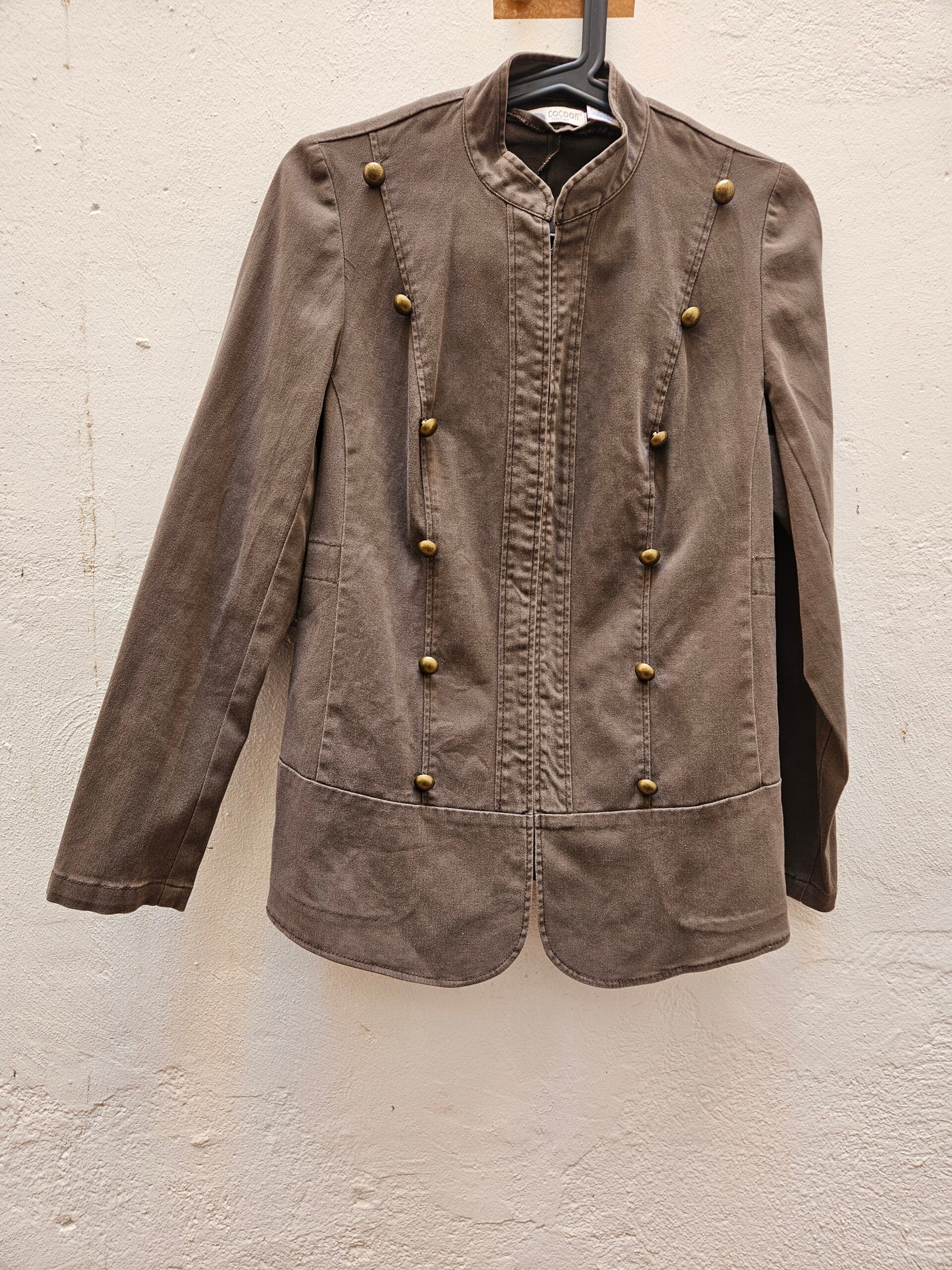 Blazer / americana marrón como nueva. Es tipo tejana. Los botones son decorativos. Es la talla 38, de la marca Cocoon. De axila a axila mide 47cm, de hombros 36cm y de largo 61cm.